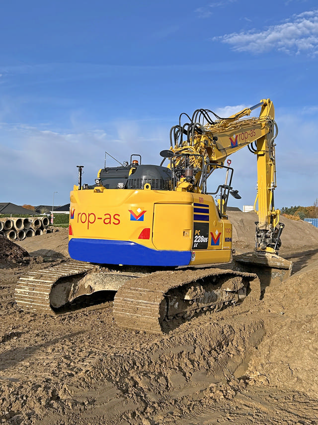 Den anden Komatsu-nyerhvervelse til entreprenørfirmaet i Herlufmagle blev en klassisk 27 tons Komatsu PC228USLC-11 gravemaskine, som er en god allround gravemaskine til mange formål. Blandt andet ved Eskilstrup på det nordlige Falster, hvor ROP har vundet et projekt for Vejdirektoratet med krydsombygning.