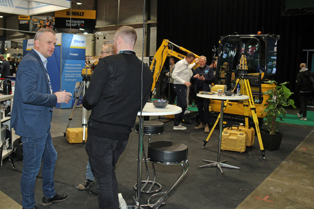 Han og kollegerne fik et par travle messedage med Topcon-materiellet i fokus. Topcon danner grundstammen i Scantrucks specialafdeling for maskinstyring, landmåling og Smart Construction.